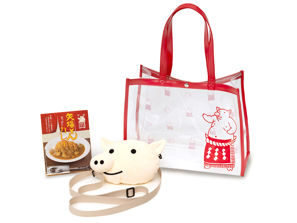 ぶーちゃんクリアバッグ×1個 ぶーちゃんポーチ×1個 矢場とんなつかしのカレー×1個( 約250g) 矢場とんショッピングクーポン2000円分 |