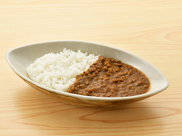 キーマカレーにとんかつをトッピングして簡単にカツカレーにもできます。